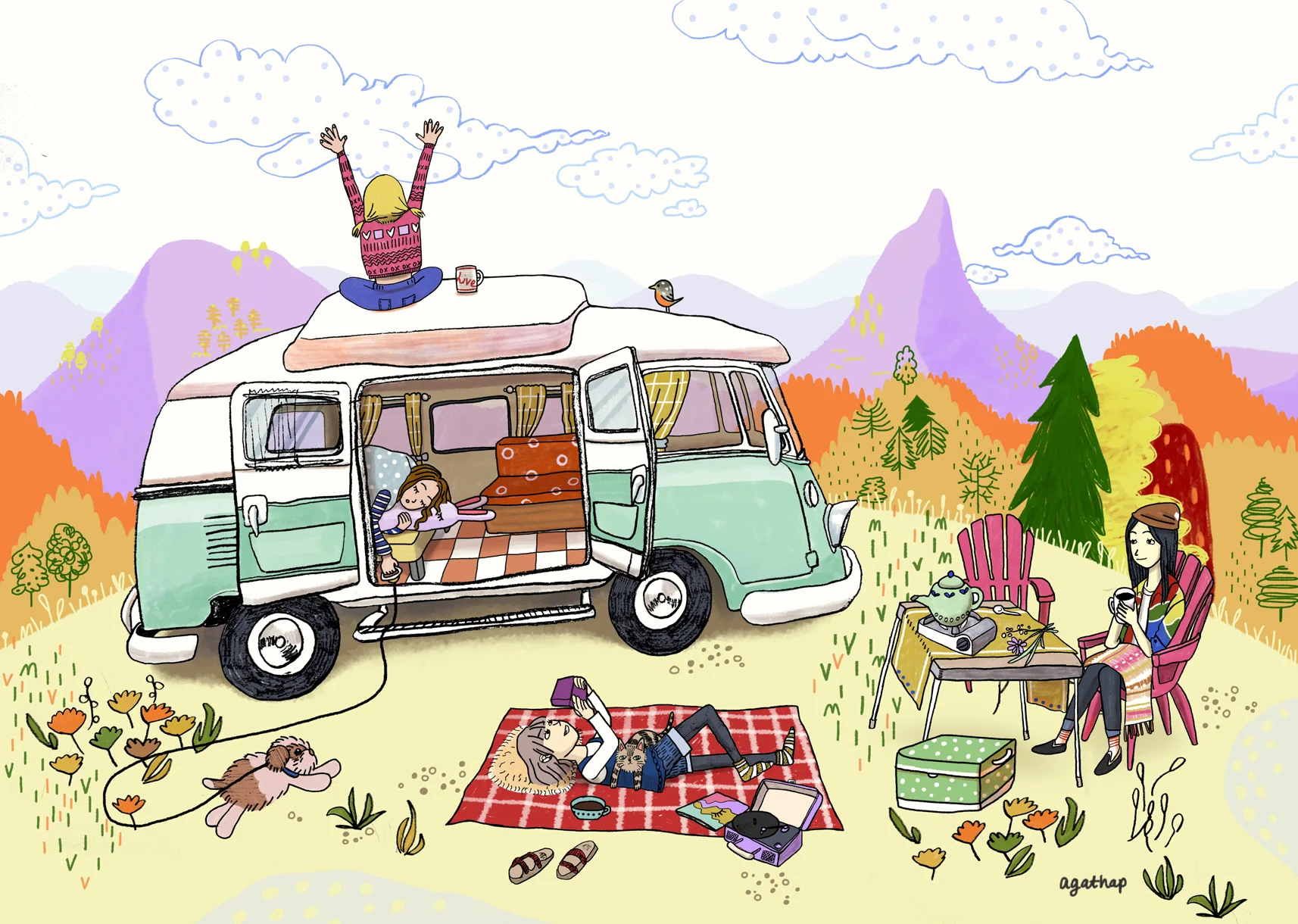 This illustration is a part of my Cabbit project. Cabbit is a cat-rabbit. One of her missions in life is to be happy. Posters and cards will be available soon! :)