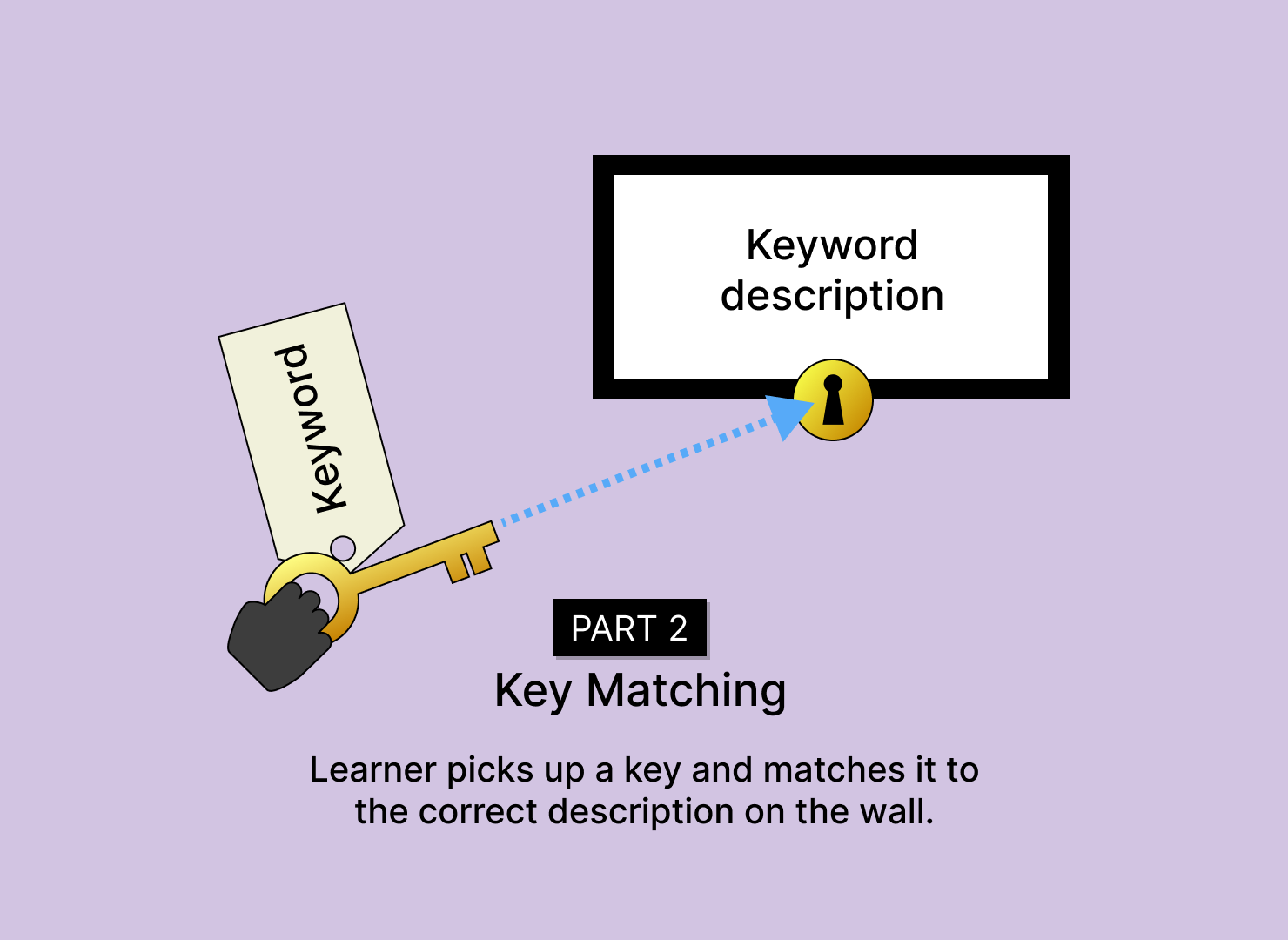 This helped shrink the entire activity zone to a single wall, where learners could focus on key matching.